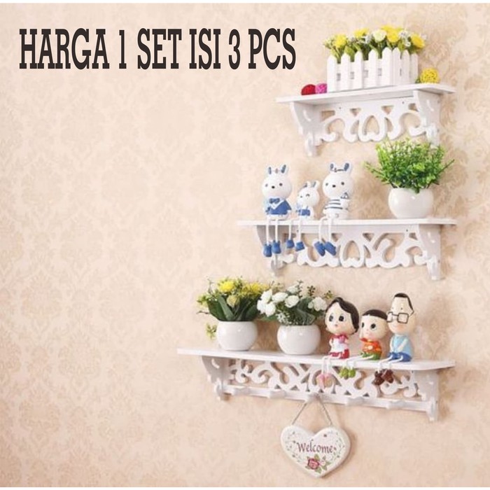 HARGA 1 SET ISI 3 PCSTIDAK TERMASUK PAJANGANRak dinding vintage 1set isi 3pcs (New ada 5 hook gantungan)Brand : KINBARReady warna putihMaterial : WPCUkuran : 60cm x 10cm x 11cm46cm x 10cm x 9cm36cm x 10cm x 8cmProduk berkualitas buatan Mesin, bukan produk buatan tangan sehingga terjamin akurasi dan juga furnishing yang jauh lebih rapi sehingga membuat ruangan rumah anda lebih indah terlihat.apa itu wpc? Wpc adalah kepanjangan dari wood plastic composite, yang secara bahasa dapat diartikan komposit kayu-plastik. Composite bisa diartikan campuran, jadi wpc adalah campuran antara kayu dan plastik. Sebuah material baru yang tersusun dari elemen kayu dan plastik yang dilebur menjadi satu dan membentuk sebuah material baru, wpc. Bahan anti air, tidak gampang terbakar, mudah dibersihkan.Harga Di Atas 1 Set Isi 3 PcsBerat Satuan: 1000