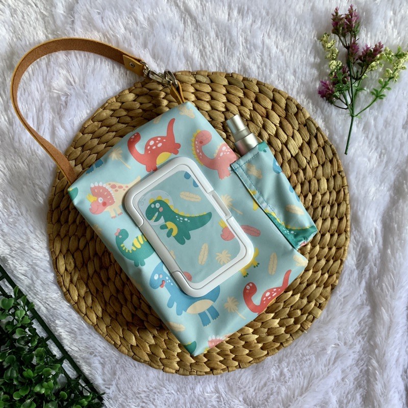 Diskon Perlengkapan di Kabupaten Pamekasan 2 In 1 & 3 In 1 Tissue Cover / Tempat Tisu Kering, Basah, & Hand Sanitizer (motif Dino) dari Tidak Ada Merek Kota Surabaya