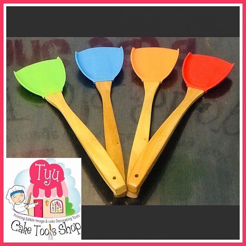Bahan dari Silicone berggagang kayu,Tahan panas hingggga 210°CSpatula sutil, dapat diggunakan untuk menggoreng, masak, buat kue, mudah dibersihkan, cocok sebagai alatt dapur anda dng pilihan warna yang menarik.ukuran 40 x 10 cmWAJIB DIBACA:MENGENAI PENGIRIMAN SETIAP HARI NYA DAN JAM OPERASIONAL- Setiap Hari Senin Toko LIBUR (Tidak ada Pengiriman) Hari Selasa buka kembali.- Pengiriman perhari nya..Via JNE :Hari Selasa-Jumat : transaksi DONE sebelum jam 4soreHari Sabtu : transaksi DONE sebelum jam 12 siangHari Minggu : Agen JNE dan Wahana TUTUP, transaksi DONE sebelum jam 13.00, di titip pengiriman di hari Senin) Via WAHANA : Agen Wahana beroperasional Hari Selasa-Sabtu, semua transaksi DONE sebelum jam 12 siang, ikut pengiriman hari itu juga.- Jam Operasional Toko (Store Operational Hour):Selasa - Jumat : Pk. 08.00wib - Pk. 19.00wib(khusus hari Jumat, jam 12.00 wib s/d jam 13.30 toko kami tutup dulu ya, untuk Sholat Jumat)Sabtu & Minggu : Pk. 08.00wib - Pk. 15.00wibHari Senin : TUTUPHari Libur(tanggalan merah) di luar hari minggu : TUTUPSemua akses pemesanan akan di non aktifkan di luar jam operasional kami.=======================MENGENAI PENGIRIMAN VIA JNE ATAU WAHANAUntuk barang yang mudah pecah/rusak/peyot, sebelum kirim, kami pastikan sudah packing barang tersebut semaksimal mungkin(packing maksimal kami yaitu dengan plastik bubble dan koran/kertas di pinggiran) dan di paket di tempel dengan stiker "FRAGILE".Kami TIDAK AKAN MENGGANTI barang yang nantinya jadi pecah/rusak/peyot karena kesalahan dari ekspedisi/JNE/WAHANA ataupun kami TIDAK AKAN membantu untuk proses komplain ke ekspedisi/JNE/WAHANA nya ya karena aslinya ekspedisi/JNE/WAHANA tidak akan mau terima paket dengan barang pecahbelah/mudah rusak/mudah peyot tanpa asuransi dan packing kayu.Bila sudah klik ''"beli''' bearti sudah mengerti aturan