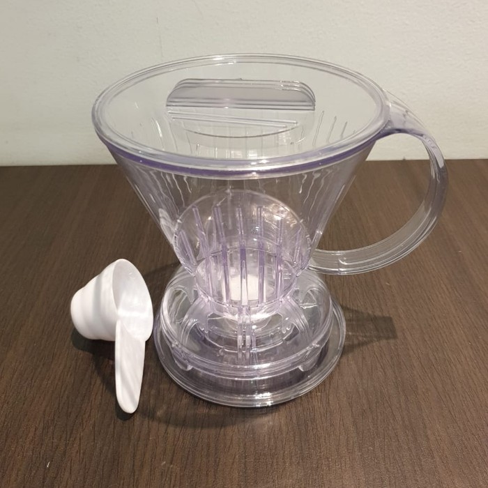 roduct DescriptionAbid Clever Dripper tipe. C70888 /Big/Size 103 1-4 cup + 100 pcs filter paper Warna bening/translucent Ukuran Large/Besar 103.untuk filter coffee bisa beli disinihttps://shopee.co.id/V60-Filter-Paper-01-Kertas-100pcs-Filter-Pour-Over-Kopi-Coklat-Brown-i.27122803.2402092858https://shopee.co.id/V60-Filter-Paper-01-Kertas-100pcs-Filter-Pour-Over-Kopi-Coklat-Brown-i.27122803.2402092858Clever dripper adalah evolusi dari Trapesium dripper/model kipas dan French Press.Perlu filter paper/kertas saring baiknyanya 103 untuk menyeduh kopi dengan alat ini.Di dasar dripper ada knob yang tertutup bila alat ini diteletakkan diatas meja, dan akan terbuka bila ditaruh diatas cangkir atau coffee server.Kenapa disebut Clever/Pintar, karna tidak perlu barista pintar dan terlatih untuk membuatnya, hanya perlu air panas, dan timing yang pas saja, tidak perlu menuang tepat pada sasaran, dan teknik2 lainnya.Bahkan orang2 dummies, serba tidak tahu bisa menbuat kopi enak.Dengan alat ini, hasilkan kopi yang seimbang (equilibrium), karena kopi direndam sepenuhnya, dalam waktu yg kita tetapkan, dan filter berfungsi sebagai penyaring ampas, supaya tidak terjadi ekstraksi lanjutan pada komponen tidak baik dari bubuk kopi. Selain itu, hasilkan kopi yang berish, bebas ampas atau partikel, sehinggi bisa dinikmati sampai tetes terakhir.cara membuat kopi.1. Taruh Clever diatas meja2. Filter 103 di lipat sisinya dan dikembangkan diatas Clever dripper.3. sediakan bubuk kopi giling kasar (sekasar gula pasir) sesuai takaran air, 10g untuk 120-150 cc air.4. Seduh dengan air panas pada suhu 92 derajat celsius (+/- 2 derajat)5. Aduk merata, tunggu 2-4 menit6. Agkat Clever, dan taruh di atas coffee server/penampung, knob akan terbuka, lalu seduhan kopi akan turun ke Server.7. setelah seduhan sudah kering, angkat Clever, dan kopi nikmat sudah siap dihidangkan.Clever sangat cocok utk membuat kopi massal utk pesta, acara, atau pameran. karena bisa membuat sekaligus 4 cup x 120ml per kali seduhdengan 4-6 set alat bisa menyeduh 16-24 cup per 4 menit.untuk extra filter nya bisa di beli disinihttps://shopee.co.id/Kertas-Filter-Drip-Coffee-V60-Filter-Paper-2to4cup-isi-100lembar-i.27122803.23985