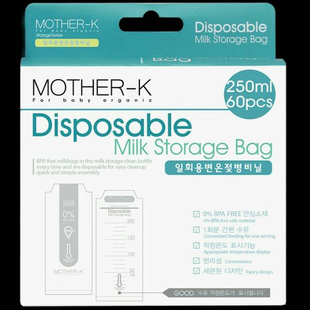 Mother-K Disposable Milk Storage Bag adalah plastik yang digunakan pada Disposable Feeding Bottle untuk mempermudah mommy saat bepergian atau traveling, tidak perlu cuci botol. Ukuran plastik 21,5cm x 10cmKelebihan Mother-K - Disposable Milk Storage bag :1. Terdapat tempat penulisan tanggal pada kemasan2. Praktis, hanya 1 kali pemakaian dan dapat langsung dibuang jika sudah digunakan3. Terdapat petunjuk ukuran yang jelas4. BPA Free5. Ringan & mudah dibawa kemanapun6. Terdapat sensor suhu / temperatur yang dapat berfungsi pada kemasanCara penggunaannya:- Letakkan disposable milk storage bag ke dalam disposable feeding bootle- Tuangkan susu bubuk ke dalam disposable feeding bootle dan isi dengan air panas- Kocok susu sampai tidak ada sisa susu yang menggumpal- Sajikan susu yang sudah tercampur dengan rata ke anak Anda- Setalah selesai digunakan, buang Disposable Milk Storage Bag dan hanya cuci dotnya dengan bersihCocok digunakan pada disposable feeding bottle ato bisa juga digunakan pada botol pigeon, avent, dll yang diameternya
