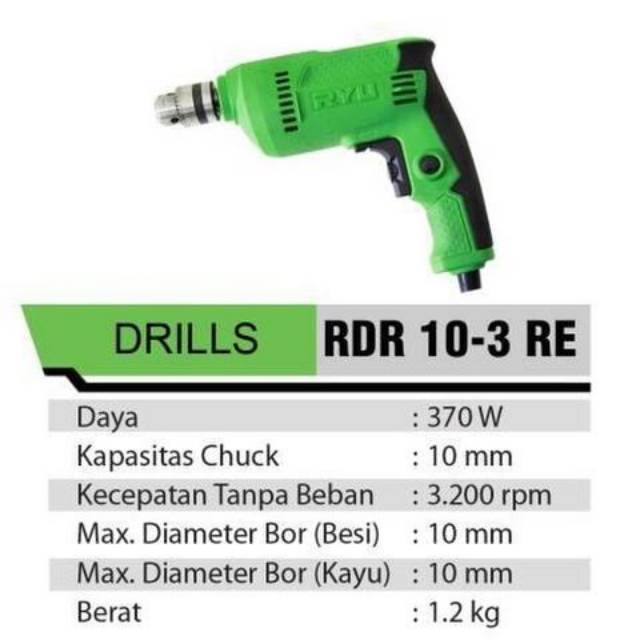 Flash Sale Perlengkapan di Kabupaten Tasikmalaya Bor 10mm Ryu Rdr10-3 / Bor Ryu 10mm dari Gt Teknik Tasik Kota Tasikmalaya