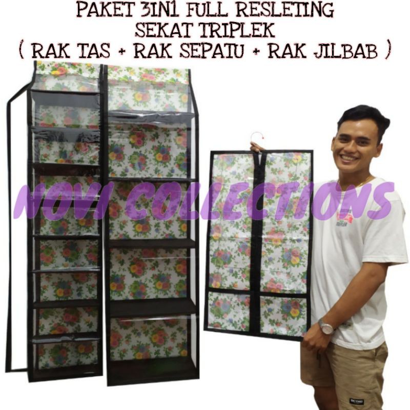 Pusat Grosir Perlengkapan di Kabupaten Banyuwangi Hjo Hbo Hso Pakai Resleting Paket Hemat 3in1 Rak Tas Gantung Rak Sepatu Gantung Henger Jilbab dari Sukma Collection Kab. Tulungagung